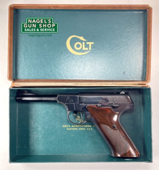 Characteristics: 4.5” Barrel, (1)10Rd Magazine, Adjustable Rear Sights, Manual Safety, Colt Wood Grips, Manufactured in Approximately 1949, Original Colt Box