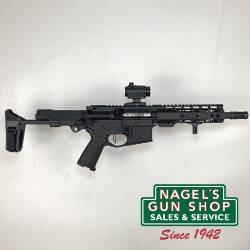 Characteristics: 8” Barrel, Semi-Auto, Pinty Red/Green Dot Sight, Ambidextrous Charging Handle, Handstop, Magpul Pistol Grip, M-Lok Handguard, Flat Trigger, SB Tactical Telescoping Brace